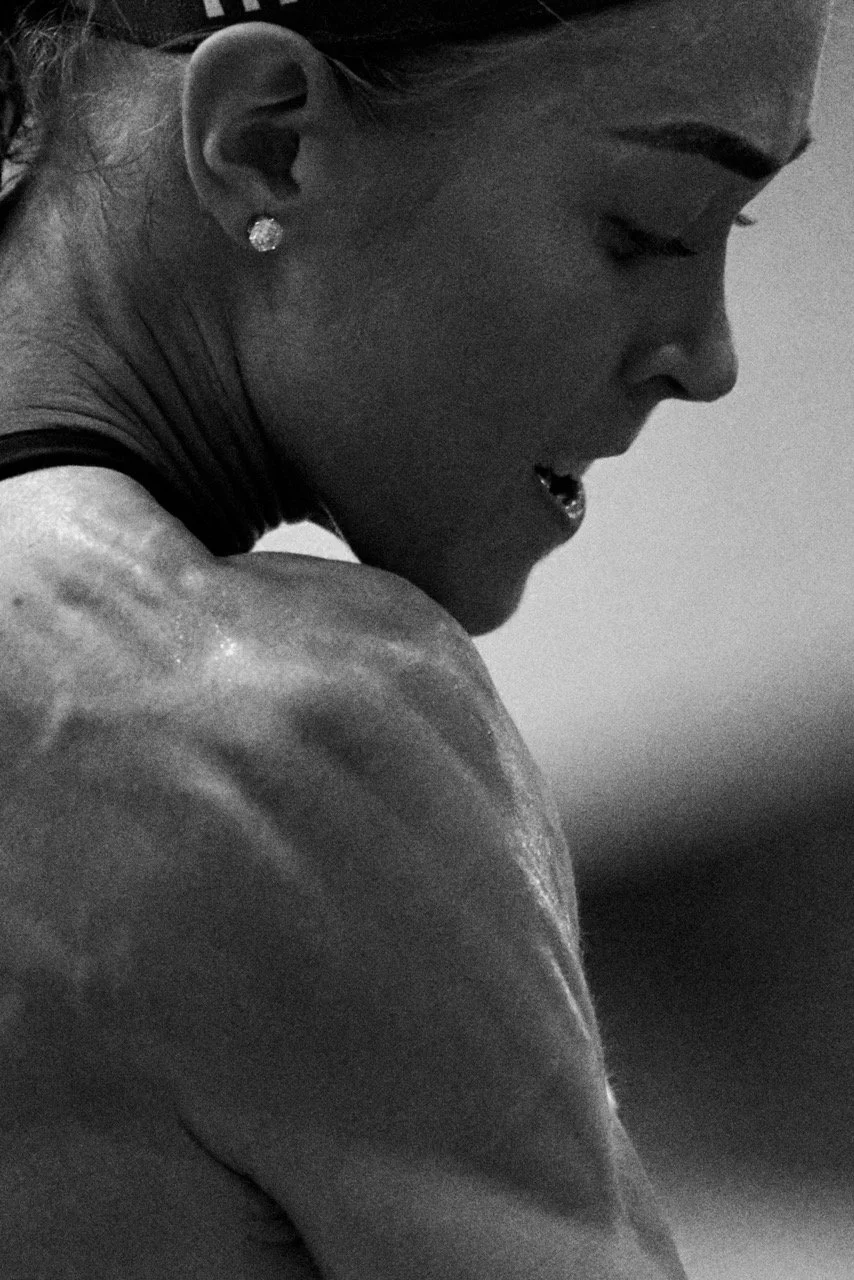 Joanna Wietrzyk performs the sled pull during the Hyrox Melbourne Major. I captured this from the grid and embraced the grain from this image. I thought the B&W look was awesome.